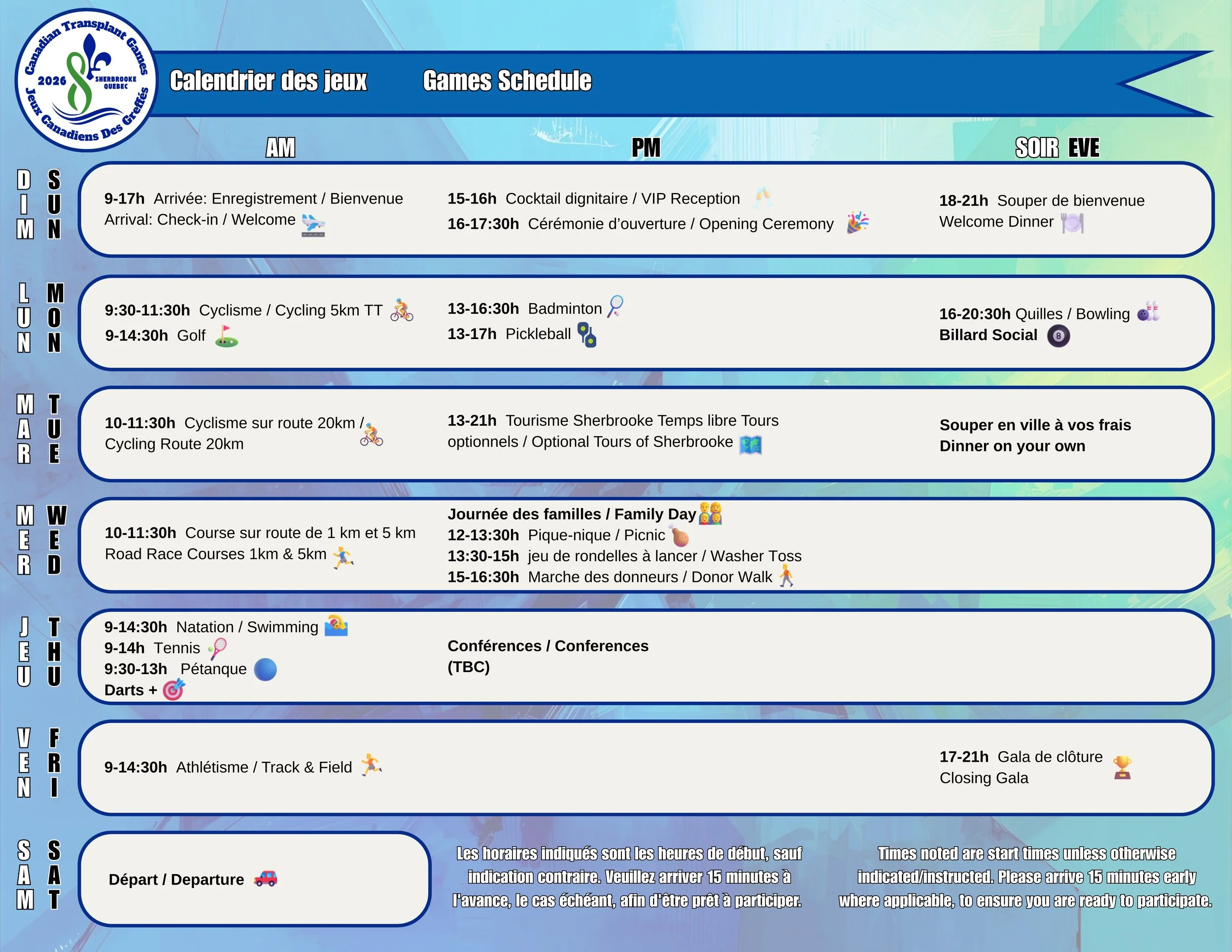 Please note: This schedule is the most current, but is subject to change. To download a PDF version, please click here.